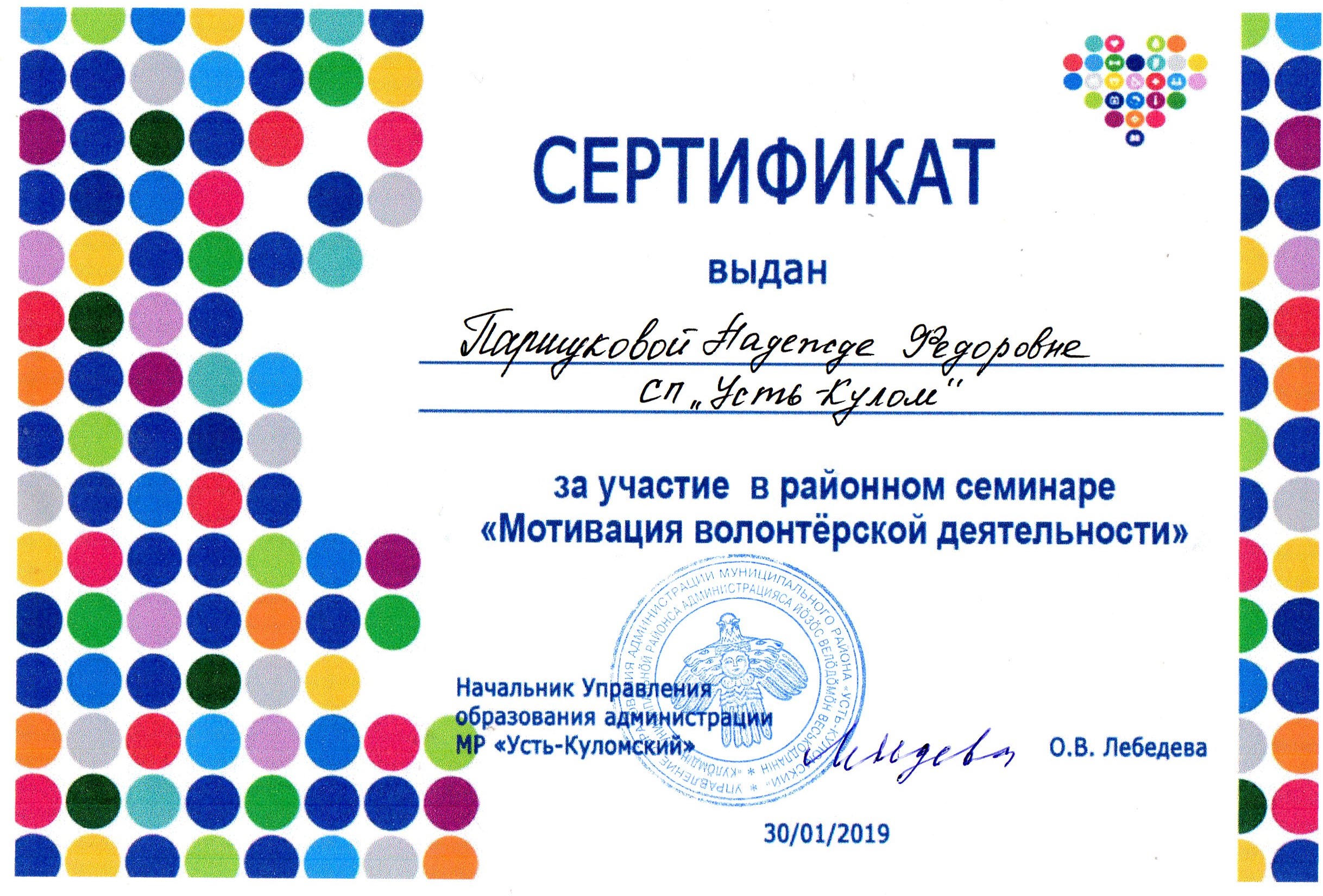 /volonterskaja_dejatelnost.jpg Сертификат за участие в районном семинаре "Мотивация волонтерской деятельности".